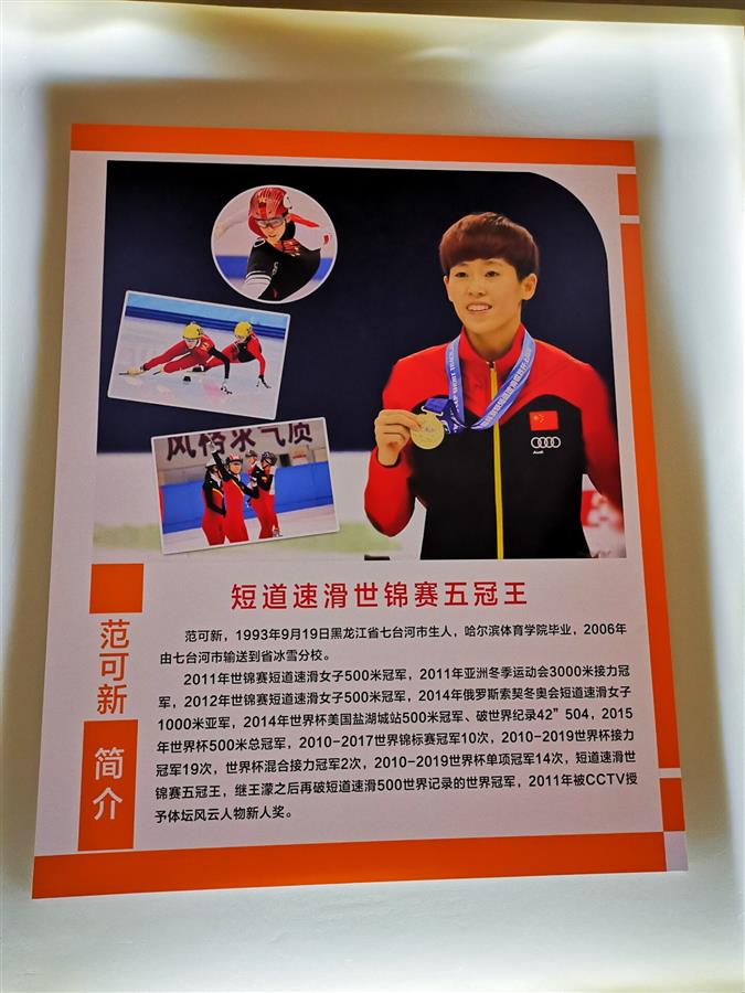 范可新的哥哥范恩玉带着妻子和儿子,专程来到妹妹当年参加训练的七台河市体育中心,观看电视直播,为妹妹加油。