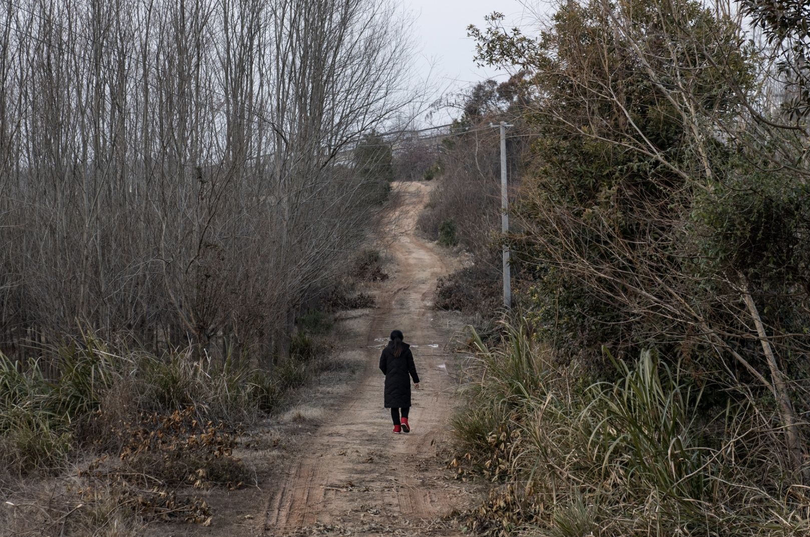 一名村民走在联通周家山和外界的小路上,目前路基已建成,就等路面硬化。长江日报记者 任勇 摄