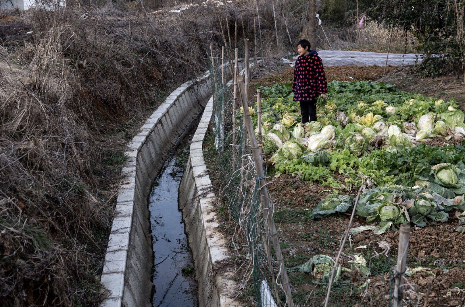 在谢店村二甲湾,一条1米宽的沟渠顺着村湾农田和菜园蜿蜒前行。 长江日报记者 任勇 摄