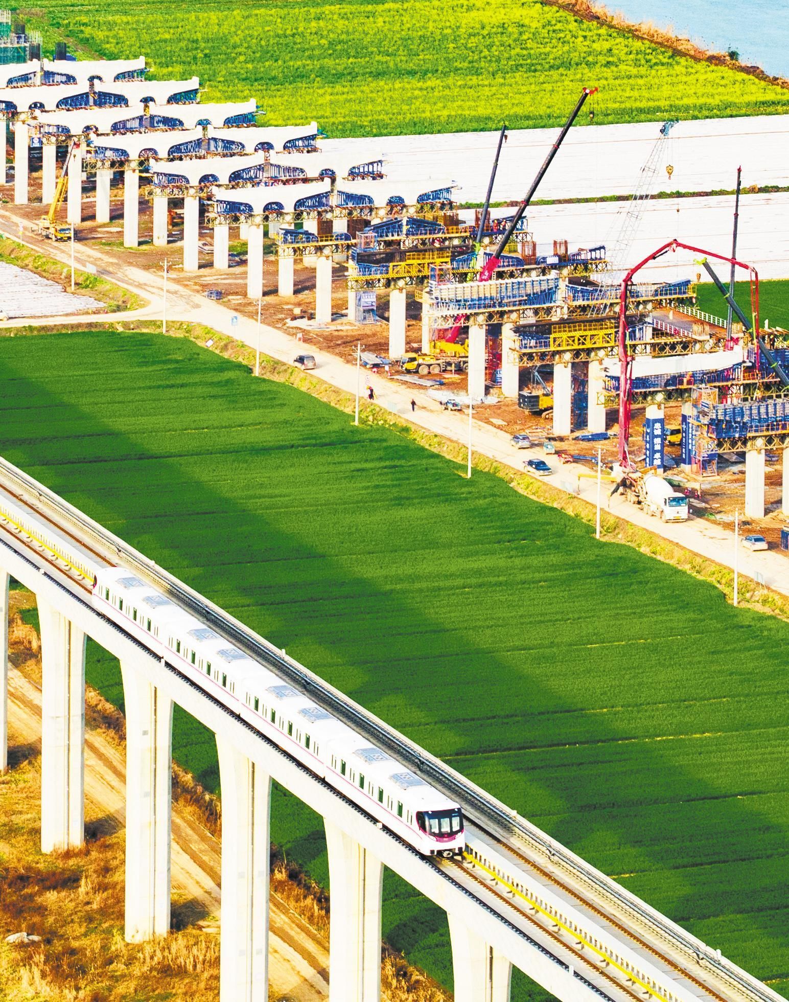 高铁飞驰,航线如织,江中千帆竞发,城乡车流涌动,荆楚画卷徐徐展开。