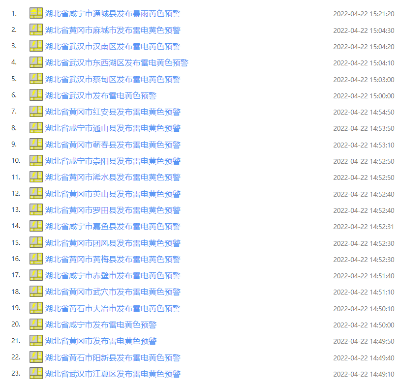 14-15时,鄂东南及鄂西北多地发布雷电黄色预警信号,提醒大家注意防范!