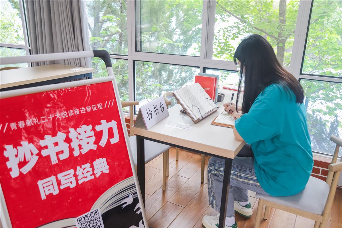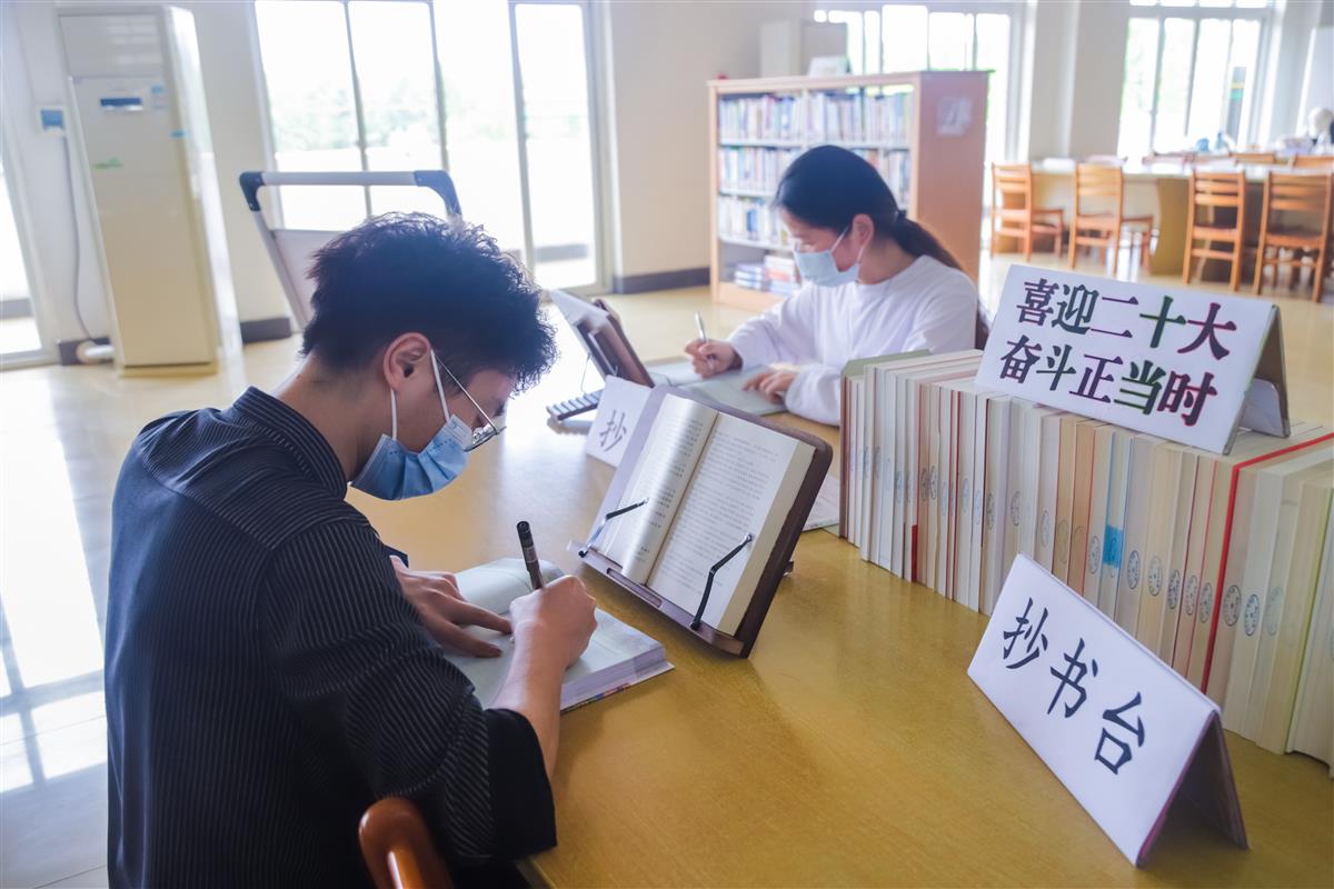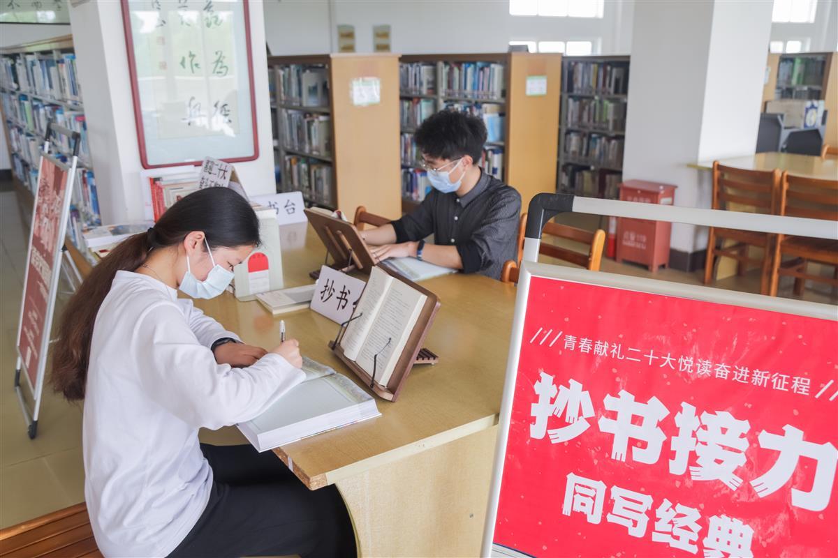 活动吸引了不少师生前来参加,学校图书馆还专门开辟了安静舒适的抄写区域,并提供活页本和笔具,使读者在一笔一划的抄写中进一步加深对红色经典文化的理解与感悟。