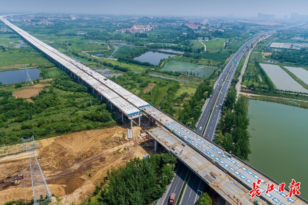 武汉至大悟高速公路上跨岱黄高速公路钢箱梁合龙。长江日报记者任勇 摄