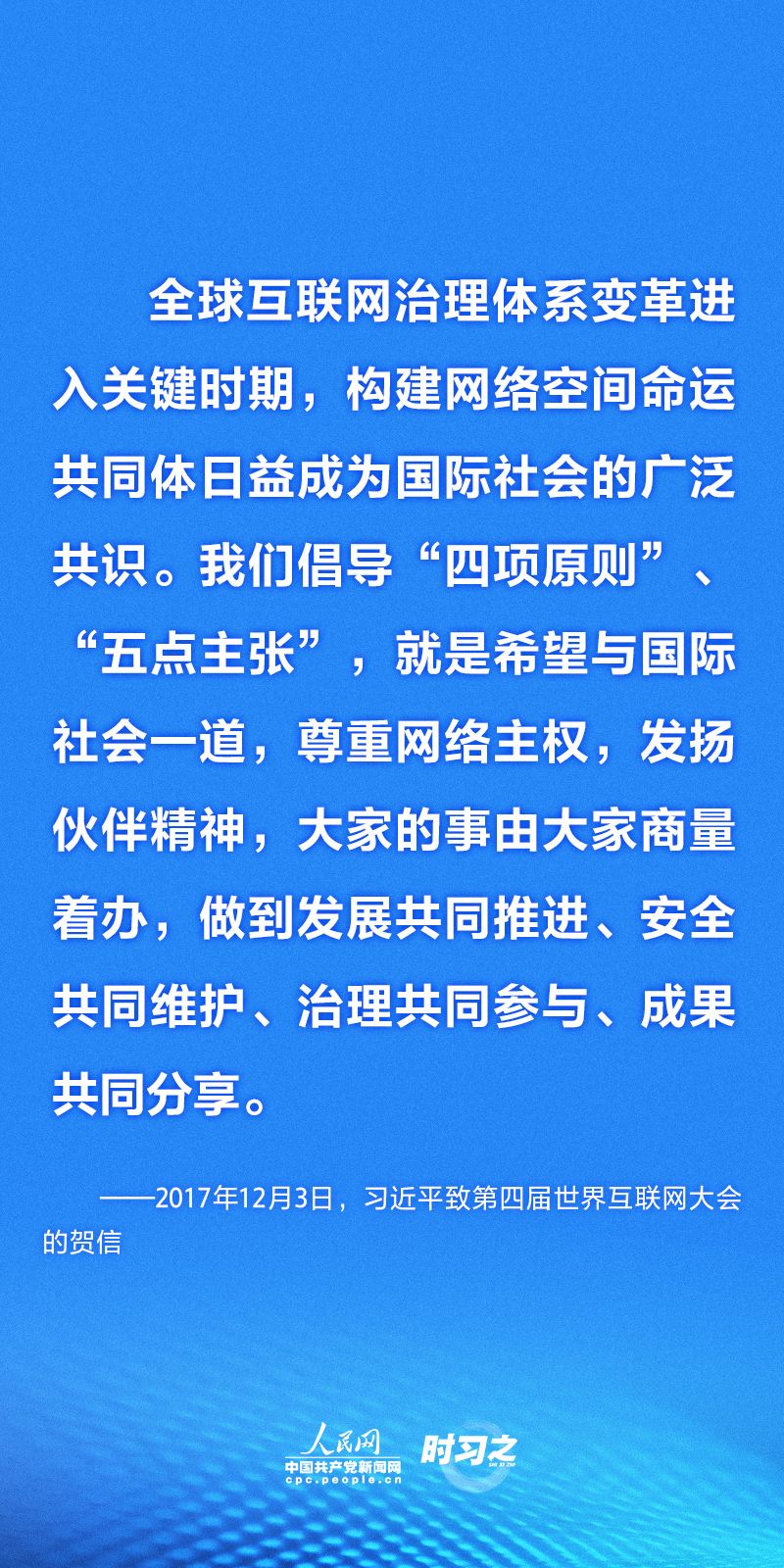“网络空间关乎人类命运,网络空间未来应由世界各国共同开创。”长期以来,以习近平同志为核心的党中央坚持以人民为中心的发展思想,高度重视网络强国建设,并多次发表重要论述及重要讲话,提出构建网络空间命运共同体的重要理念,展示了中国对网络空间人类未来发展的前瞻性思考,让互联网更好造福世界各国人民。