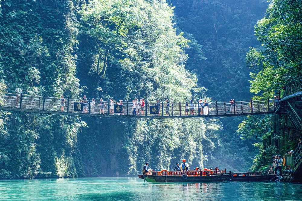 全长108公里的大峡谷,不仅是“奇观之峡”,还是“古道之峡”,昔日入蜀进川的古盐道、古官道穿峡而过;同样是“森林之峡”,大片保存完好的原始森林与峡谷相伴相生、相映成景。