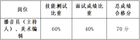 播音员(主持人)2名(男、女各1名)、美术编辑2名。