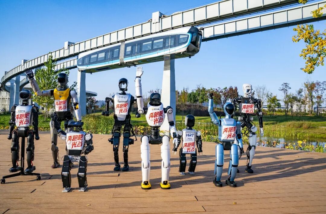 人形机器人天团助威光谷马拉松(魏铼|摄)