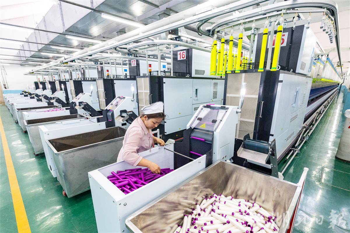 深冬时节寒意浓,但际华3509公司的生产车间里却是一派热火朝天的生产景象:9条纺纱生产线高速运转,每班仅需3名工人值守,全流程智能化生产让效率大幅提升。