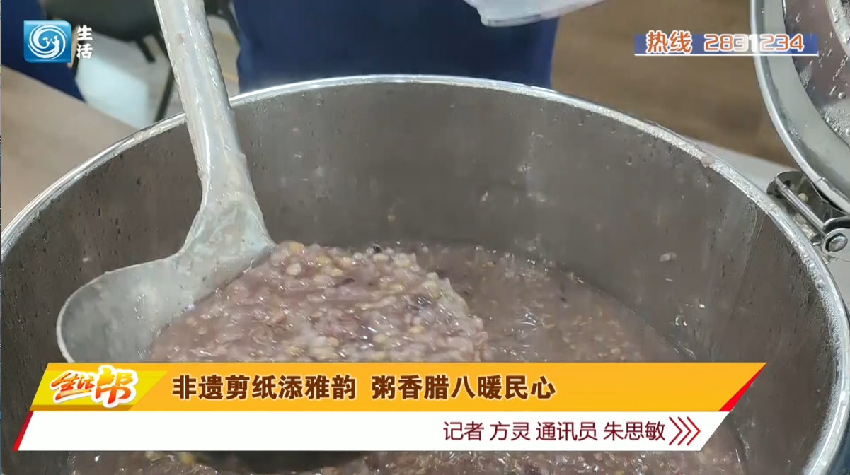 非遗体验结束后,社区工作人员和消防救援站队员将提前熬制好的腊八粥逐一分发给每位居民。大家一边品尝这份承载着节日祝福的美食,一边回味剪纸体验的乐趣,现场氛围温馨又惬意。