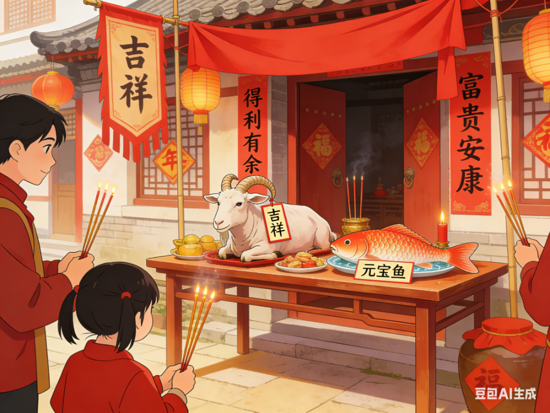 迎财神的仪式藏着不少讲究,南方各地祭财神的习俗尤为热闹。旧时春节歇业的大小店铺,都会在这天重新开张,人们闻鸡鸣即起,打开大门和窗户,燃香放鞭炮、点烟花,用热闹的声响迎接财神登门。招幌上挂起红布,家家户户摆上祭品,羊头和鲤鱼是必不可少的——羊头寓意 “吉祥”,鲤鱼因“鲤”通“利”,“鱼”通 “余”,被称作“元宝鱼”,既讨“得利有余”的彩头,也盼马年年年有余,富贵安康。亲友相聚共喝财神酒,杯盏之间,皆是对新年财运亨通的美好祝愿。
