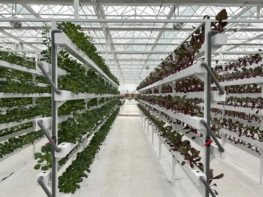 在玻璃温室内,旋转水车栽培、荷兰模式种植、漏窗栽培等无土栽培模式广泛应用,近20个优选果蔬品种在此培育生长,推动农业生产从传统模式向科技化、集约化转型。