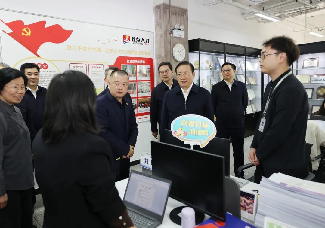 武汉起点人力资源股份有限公司是“中国服务业企业500强”企业,通过打造“线上+线下”一体化平台,为客户提供全场景、定制化的人力资源解决方案。王忠林认真察看平台运行情况,详细了解企业服务范围、重点领域和运营模式。他说,人力资源服务业一头连着广大用人单位,一头连着亿万劳动者,对促进高质量充分就业、加强人力资源开发利用、助力现代化产业体系建设具有重要作用。希望企业以数字化平台为纽带,进一步推动人才链与创新链、产业链、资金链深度融合,以更优服务为实体经济赋能增效。