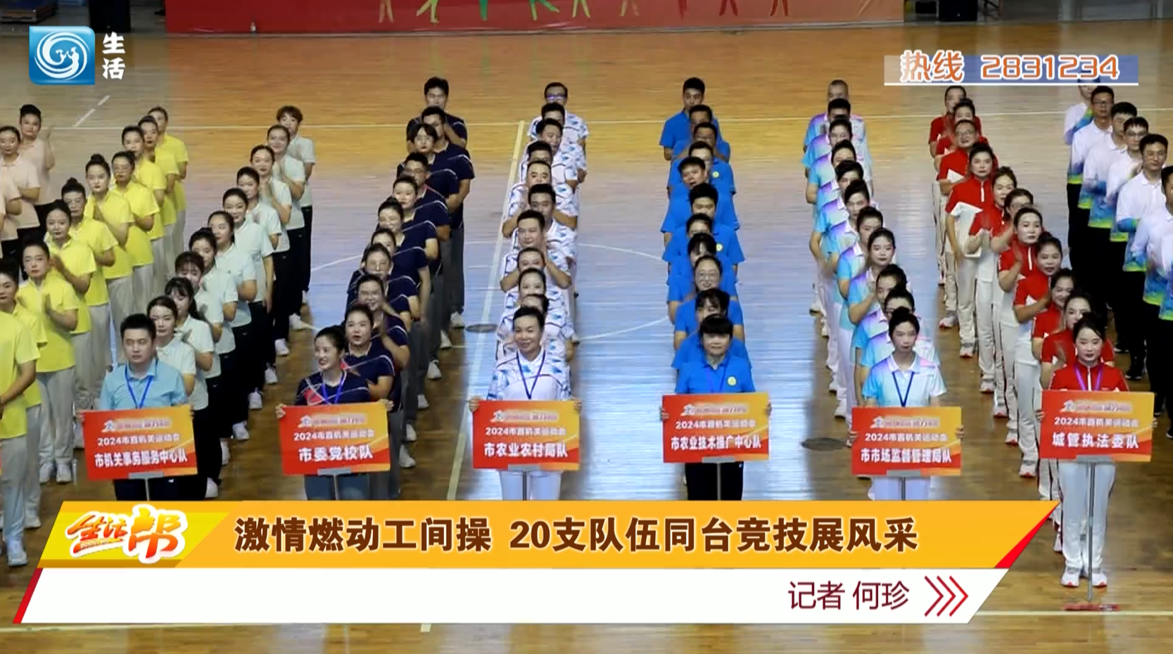 8月31号下午,2024年市直机关运动会工间操比赛在孝感市体育中心体育馆激情开赛,来自全市的20支代表队共500人参赛。