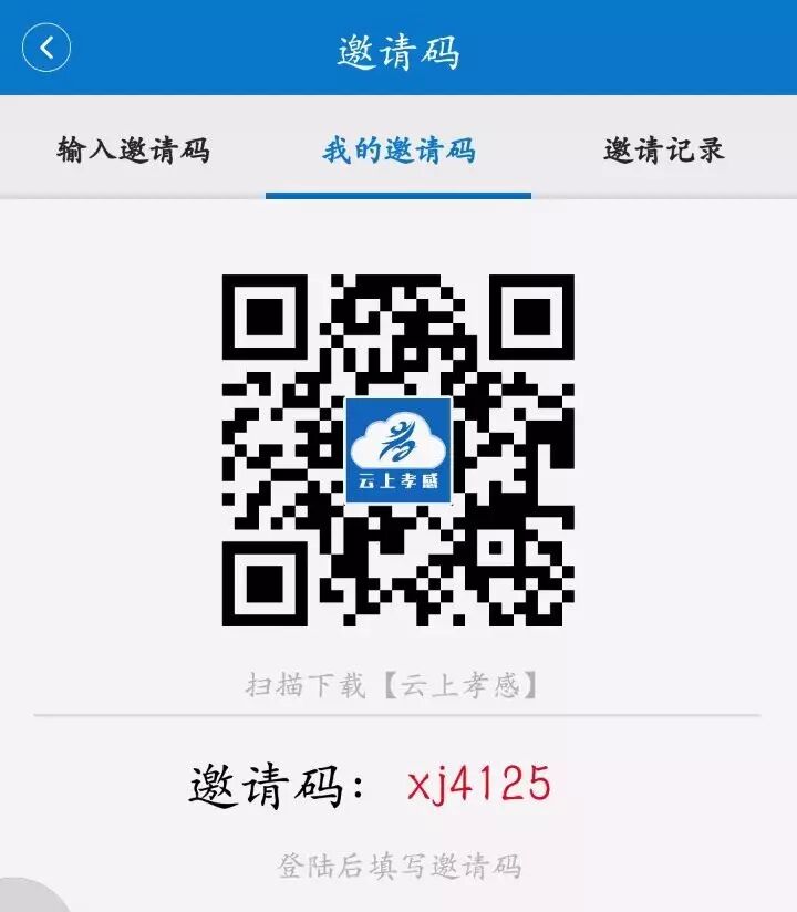 扫描二微码,安装“云上孝感”,输入邀请码“xj4125”