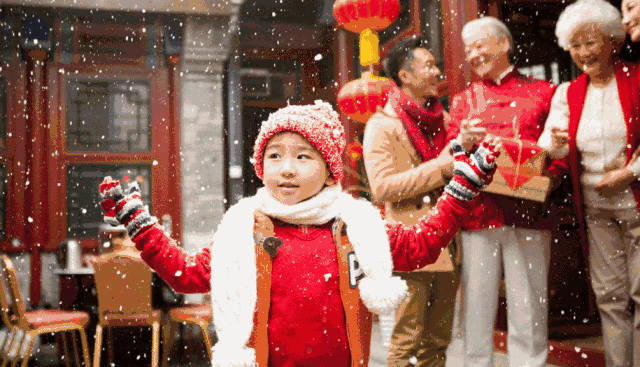 远处是姑姑在粘一张大红福字的窗花,把玻璃窗上的雾气揩掉,均匀涂抹上一层浆糊,窗花精巧的模样,就显现在玻璃窗上。