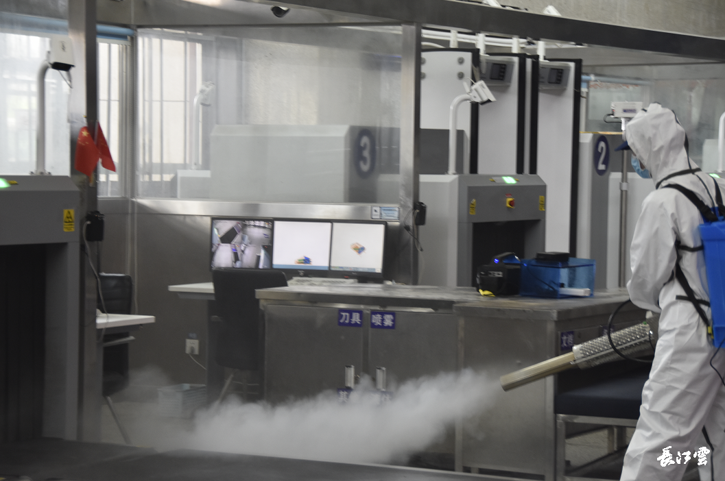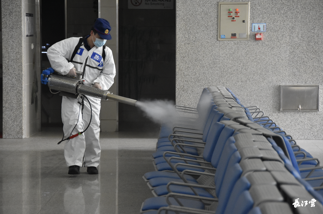 在武昌火车站,工作人员除了对设施设备进行检测、维护和试运行外,对车站内外的清洁消杀仍是重中之重。武昌火车站值班站长徐芳介绍,在做好日常消毒工作的同时,在开站前车站也邀请了武汉市消防支队的专业机构进行了深度消杀,尤其是对我们的进出站通道、查验闸机、安检设备、还有旅客座椅、卫生间、饮水间、垃圾桶都做了全面的消毒工作。同时安排保洁人员分区上岗,确保候车室环境卫生良好。