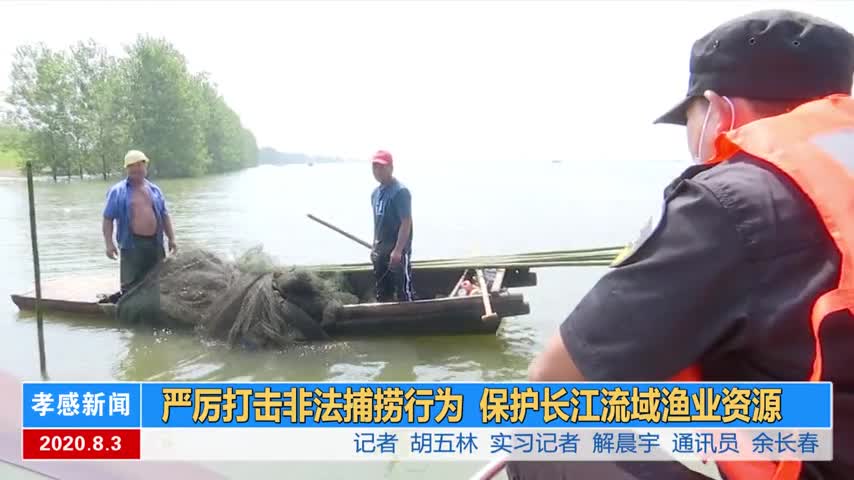7月31日上午9点,执法人员在府澴河(孝南段)集合完毕后,统一穿戴救生衣,乘坐执法艇沿府澴河下游水域进行巡查,对禁捕区水域的所有捕捞船只、捕捞网具全部收缴带上岸进行集中销毁。正当执法人员巡查到府澴河中段时,发现了两名渔民正在非法捕捞。