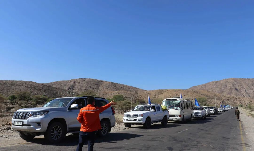11月11日,撤离车辆行驶在埃塞俄比亚提格雷州至亚的斯亚贝巴的路上。新华社发(葛洲坝集团供图) 一时间,在提格雷州冲突地区,埃塞俄比亚国防军对“提人阵”目标的轰炸接连不断。 此时,在提格雷州的工程项目和工业园区工作的600多名中国同胞日夜难眠,他们在国内的亲人也焦急万分。 军事冲突可能造成生活物资采购困难,马克雷项目部决定增加食物和饮用水储备。冒险前往当地市场采购的中资机构人员发现,街上人车稀少,很多商铺已大门紧闭。 为防止军事冲突扩大危及中国同胞安全,中国驻埃塞俄比亚大使馆果断决定组织中国公民撤离,并指定马克雷项目部负责组织撤离方案的演练、完善和更新。 当地时间11日清晨6时,在使馆协调下,马克雷项目部联合中交、中铁等单位集合了第一批402名同胞、60多台车辆,开始从提格雷州撤离,前往埃塞俄比亚首都亚的斯亚贝巴。