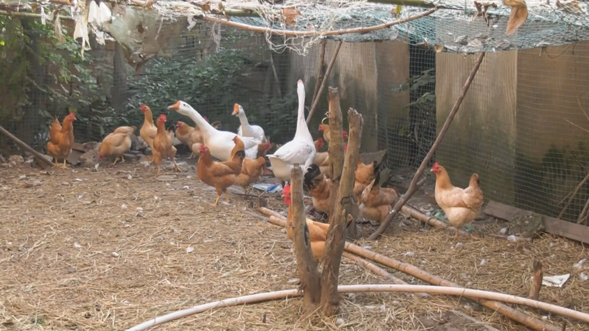 脱贫户张柏清家养的鸡
