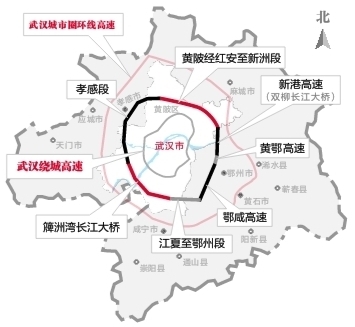 武汉市环线路网示意图。