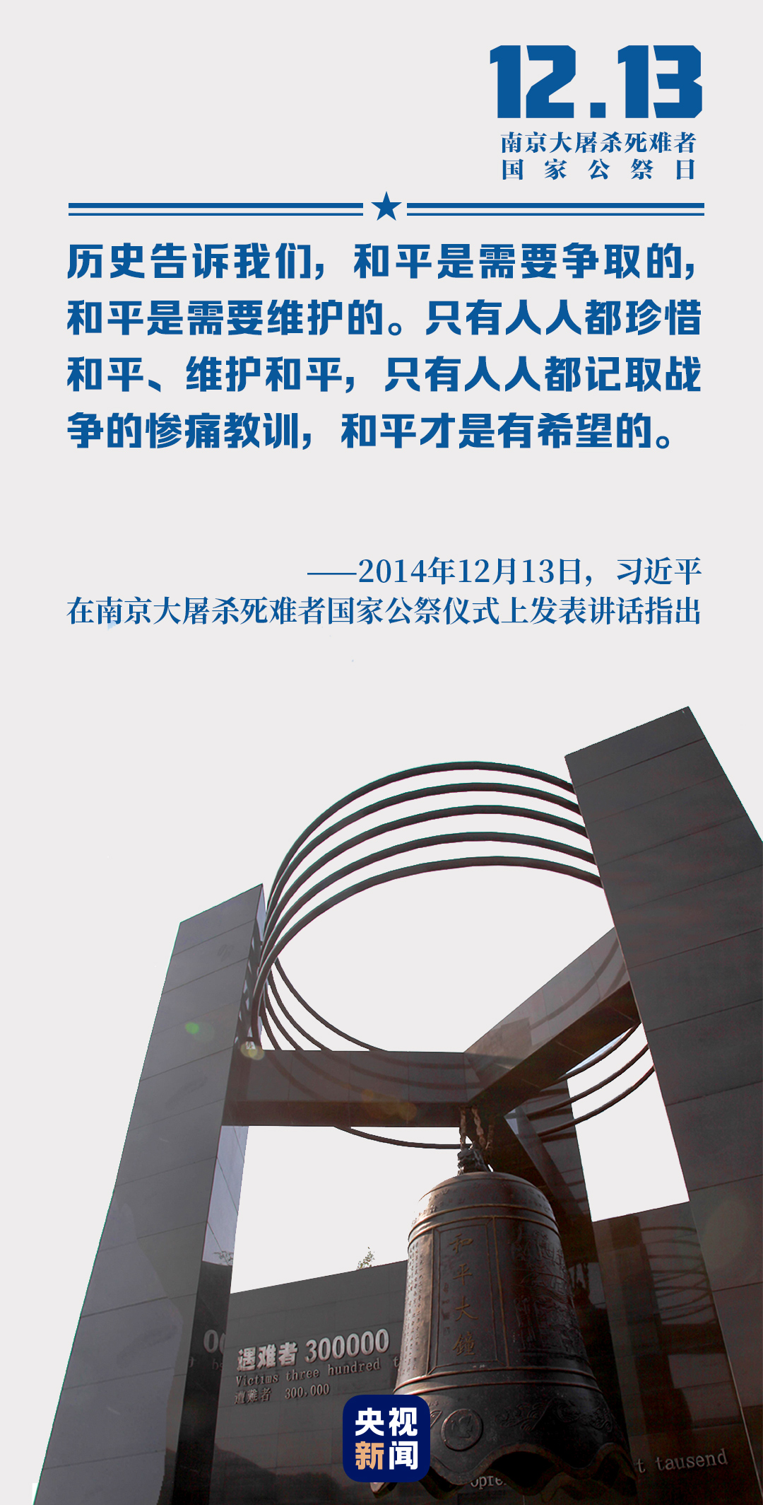 6年来,我们以国家之名祭奠死难者,以尊崇之心珍视和平,以民族之力矢志复兴。