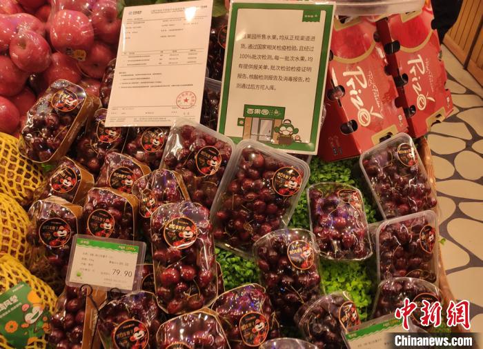 近日,无锡“一份进口车厘子内表面核酸检测呈阳性”的消息引发社会关注。1月24日晚,中新网记者走访无锡多家水果店发现,不少店家将车厘子放在醒目位置促销,并配备了核酸检测证明“自证清白”。
