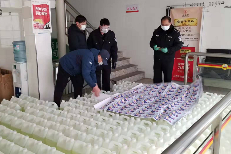 ↑市公安局破获假冒伪劣消毒水大案