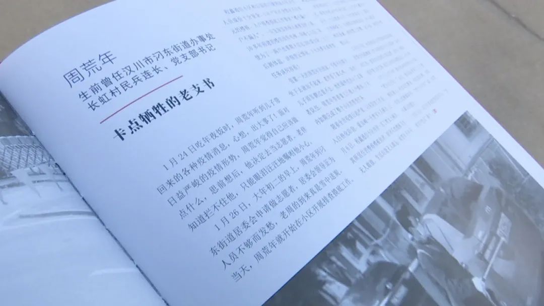 周荒年的儿子周军鹏从志愿者手中接过了父亲的荣誉证书,一起接过的还有一本《汉川抗疫风采录》。周军鹏看见自己父亲参与防疫的事迹,深有感触。他说,收到慰问,心里很感谢,感谢政府感谢汈东街道的关心关怀。他会继承父亲的遗志,把工作做好。