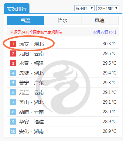 30.3℃是远安15时实时气温,31.1℃是远安全天最高温