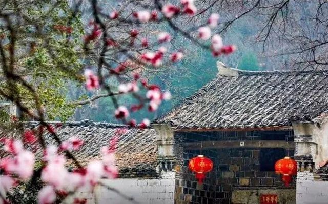 古树繁花之中的古村,