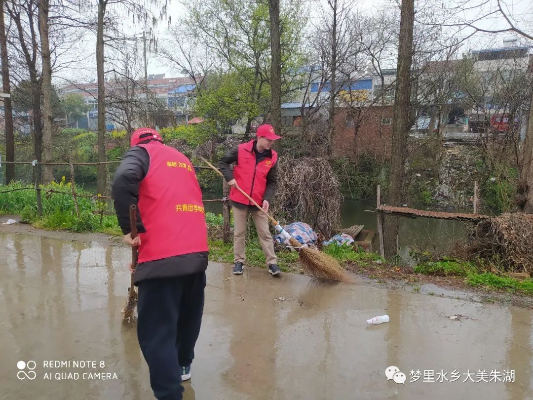活动中,红马甲们穿梭在塘口生产队的湾前屋后,对地面垃圾以及卫生死角进行清理。