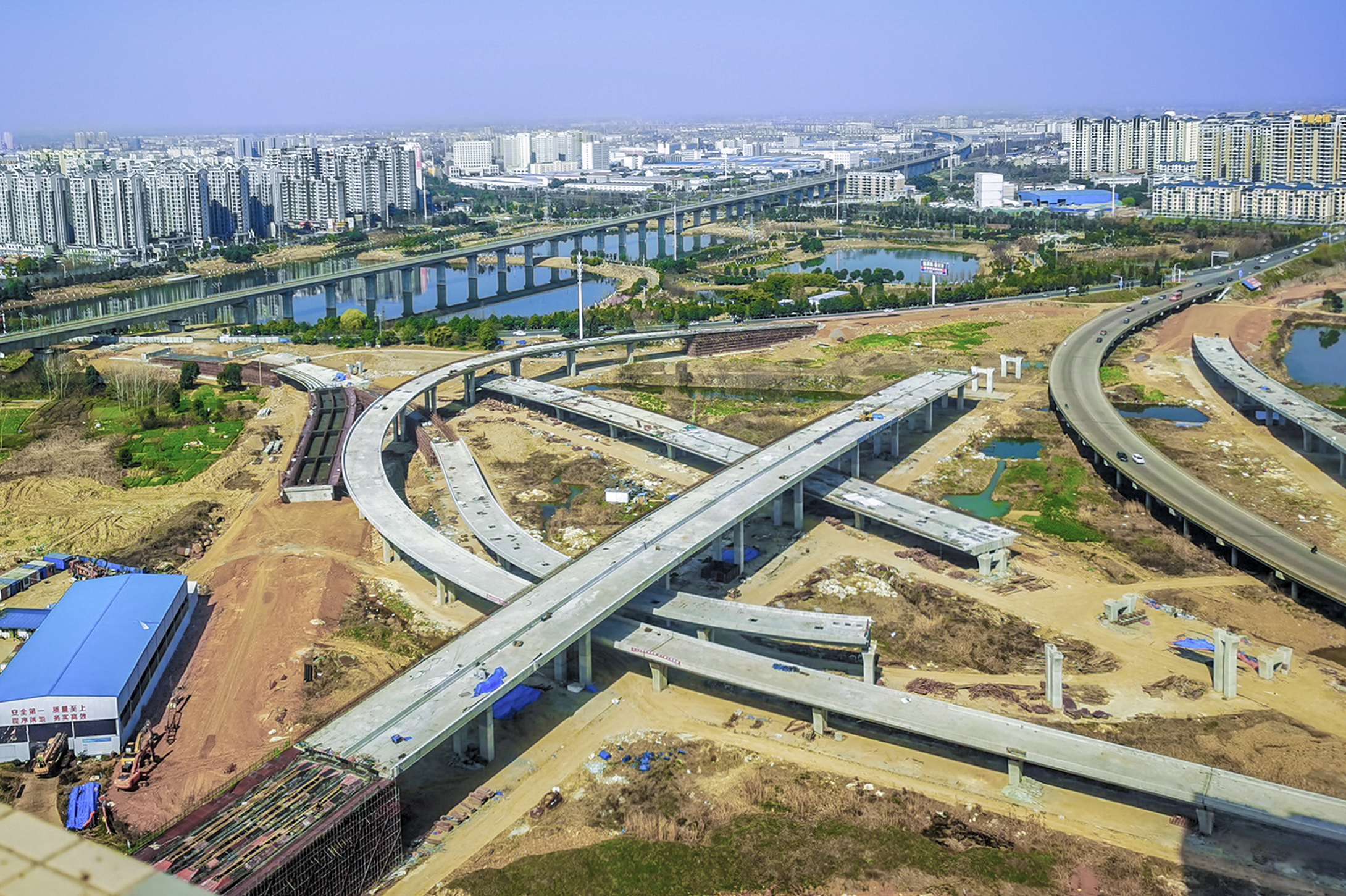 2月17日,从附近一座高楼拍摄董永北路立交桥。记者晏美华 通讯员李波 摄