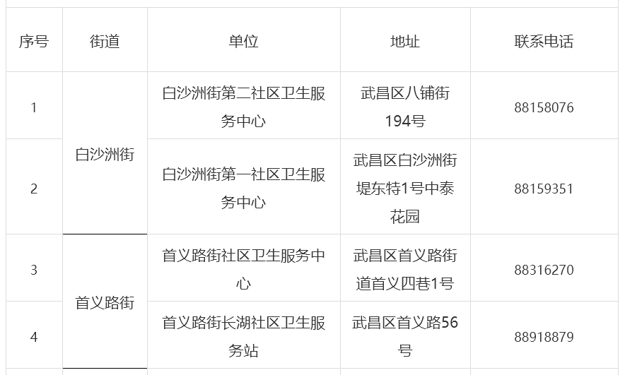 ▼武昌区新冠疫苗接种单位信息一览表(点击查看大图)