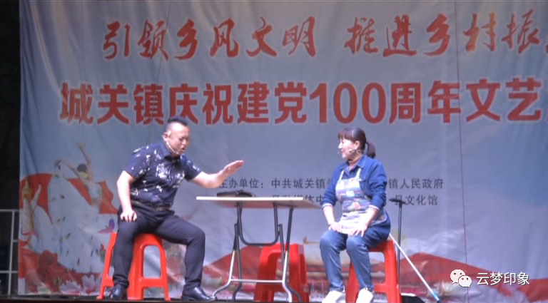 这场文艺汇演由城关镇主办,县融媒体中心、县楚剧团、县文化馆协办,主旨是庆祝建党100周年,用党建引领乡风文明。