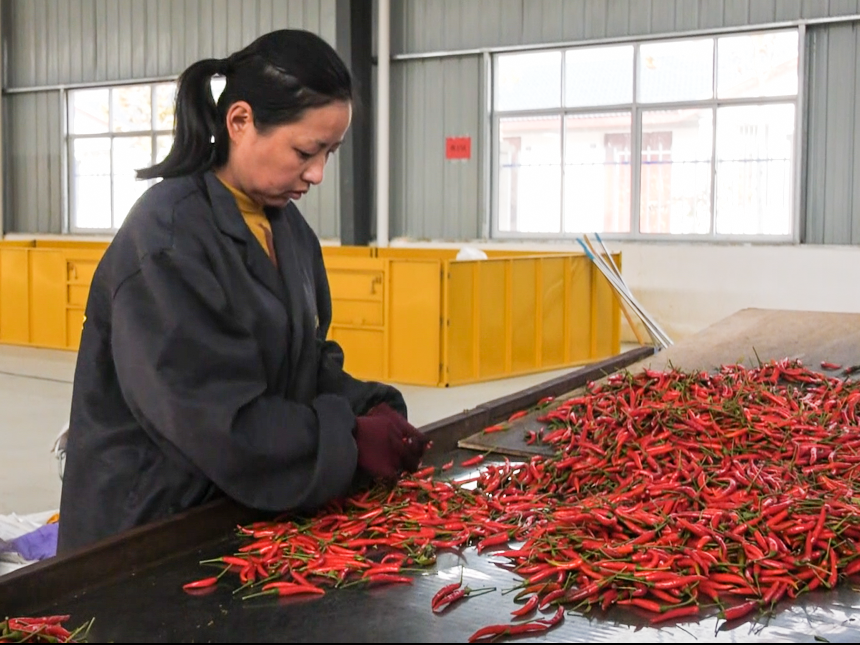 从建链再到延链补链,辣椒产业在接官实现“链式”发展——乡里兴建了烘干车间、辣椒冻库,一部分卖鲜椒,一部分制作成干辣椒,多元化顺应市场需求。