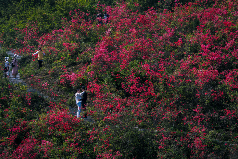 4月,安陆孛畈开满杜鹃花。(通讯员 侯向东 摄)