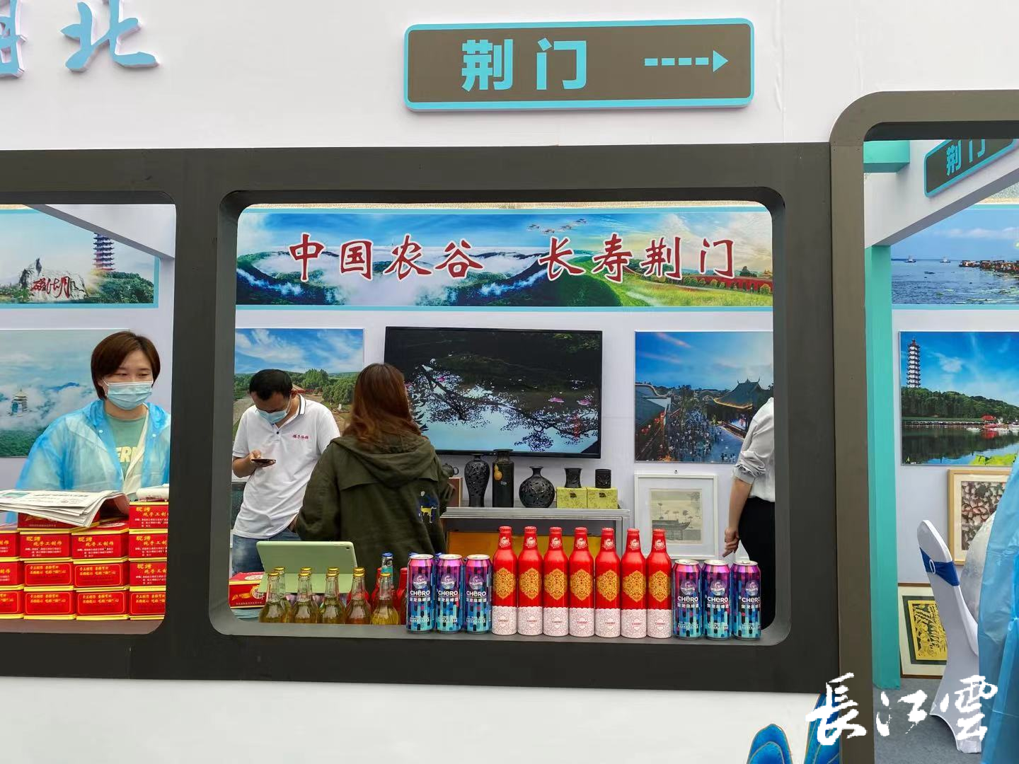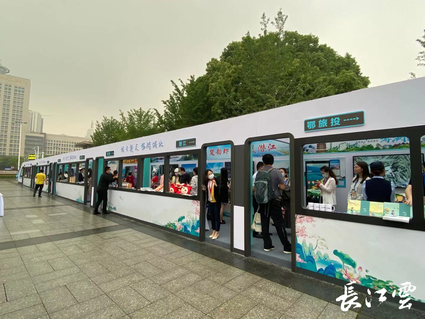 在会场,两趟以和谐号列车为原型的文旅好列车模型作为主展台,来自湖北各地的文创产品、特色美食以及非遗文化在这里展出。