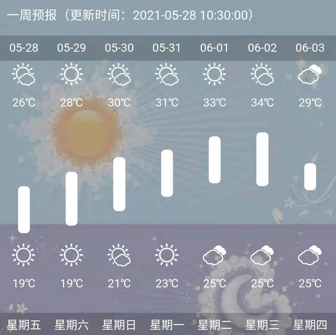 末两天全省晴热,气温逐日攀升,周六最高气温鄂西北30~32℃,其他地区26~29℃,周日大部地区升至29~32℃。双休安排外出活动的朋友,需注意防暑防晒。