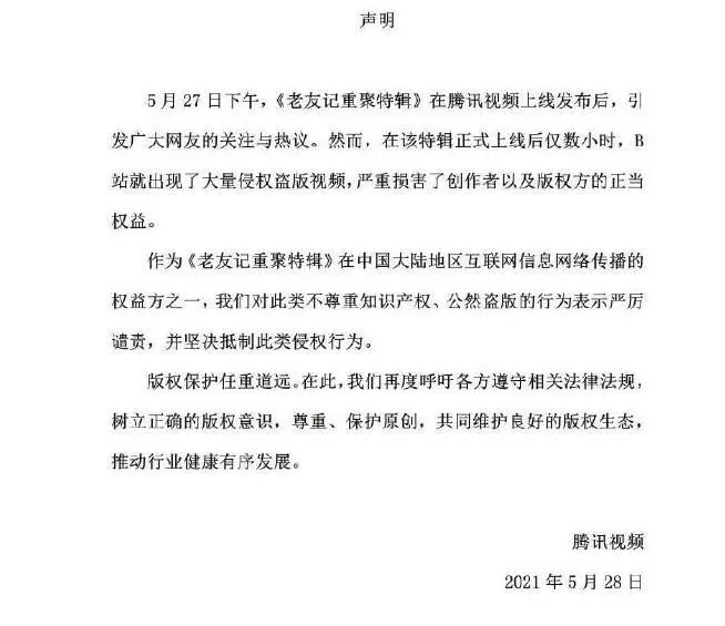 昨天(5月28日)下午3点50分,三大长视频平台腾讯视频、优酷、爱奇艺同时发布声明,谴责哔哩哔哩(B站)存在侵权盗版行为。