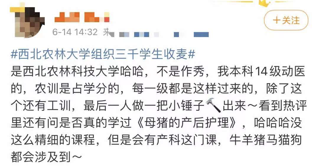 近日,“西北农林科技大学数千名师生共同在田间收小麦”的视频,冲上热搜。
