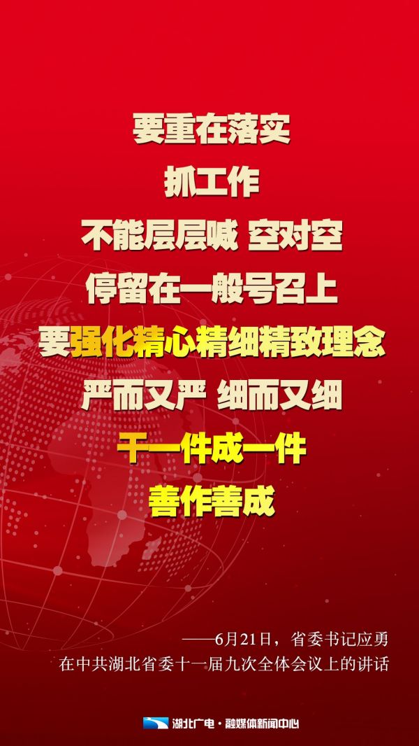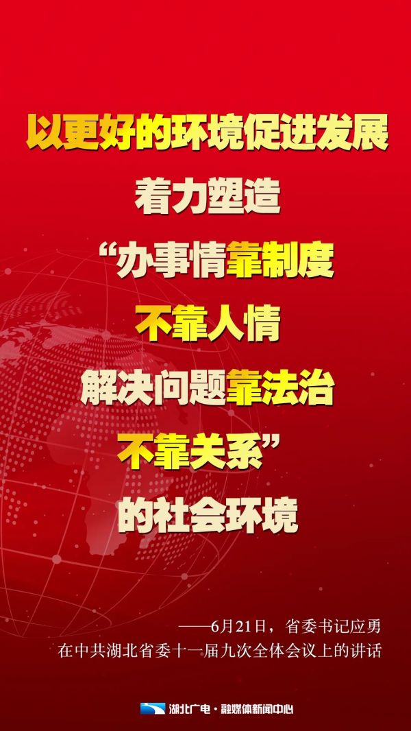 6月21日,中共湖北省委十一届九次全体会议召开。全会审议通过了《中共湖北省委、湖北省人民政府关于新时代推动湖北高质量发展加快建成中部地区崛起重要战略支点的实施意见》。会上,省委书记应勇在讲话时强调:湖北要为加快建成中部地区崛起重要战略支点作出更大努力。