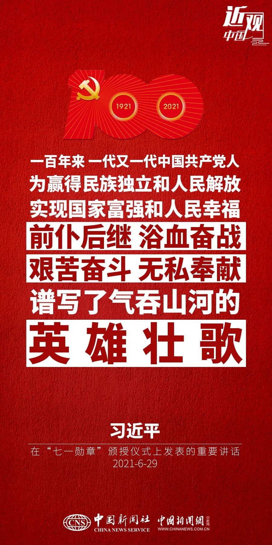 @中国新闻网 经中共中央批准,“七一勋章”颁授仪式于6月29日上午10时在人民大会堂隆重举行。中共中央总书记、国家主席、中央军委主席习近平首次颁授“七一勋章”并发表重要讲话。他强调—— (来源:中国新闻网 编辑:汤静)