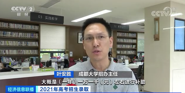 成都大学招办主任叶安胜:2021年,我们投放到乡村振兴计划的一共有26个人,这部分学生的学费、住宿费和部分补助费一年大概是11000元,经四年学习后,回到他们家乡进行建设。
