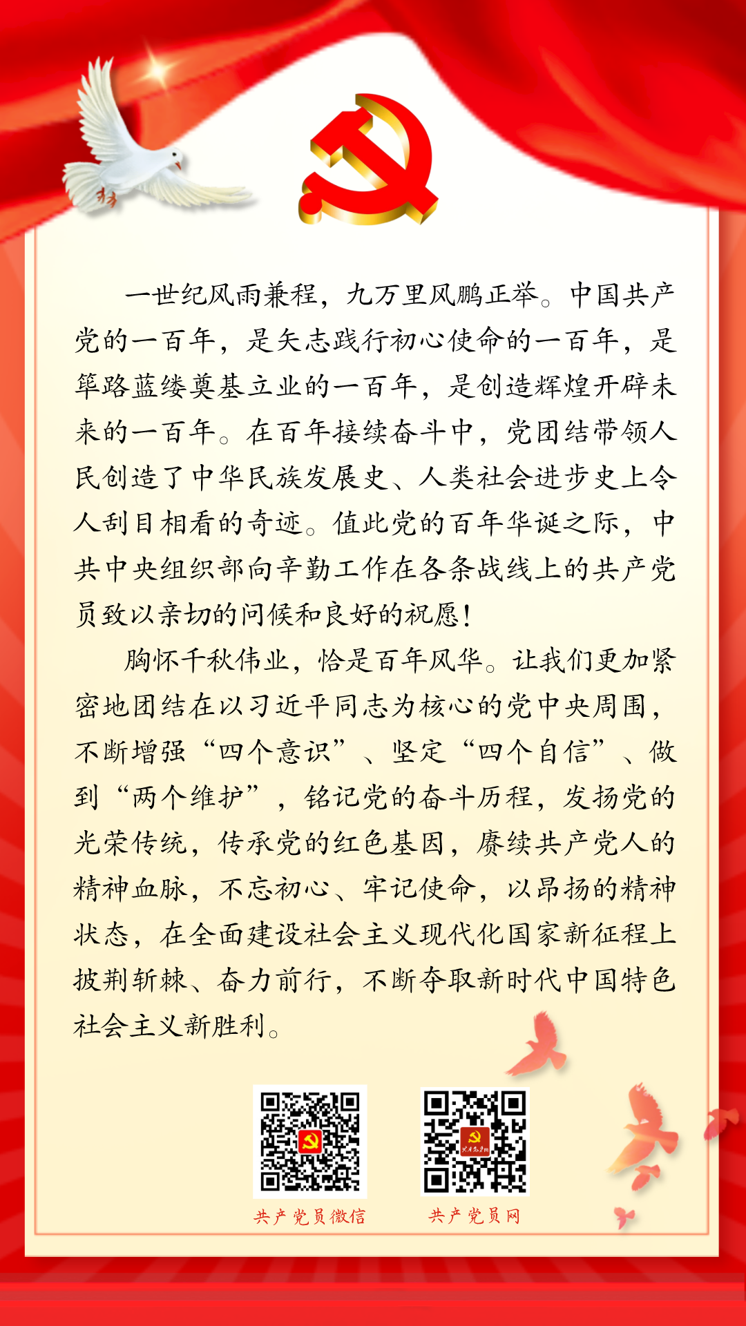 中央组织部向全国共产党员致以节日问候