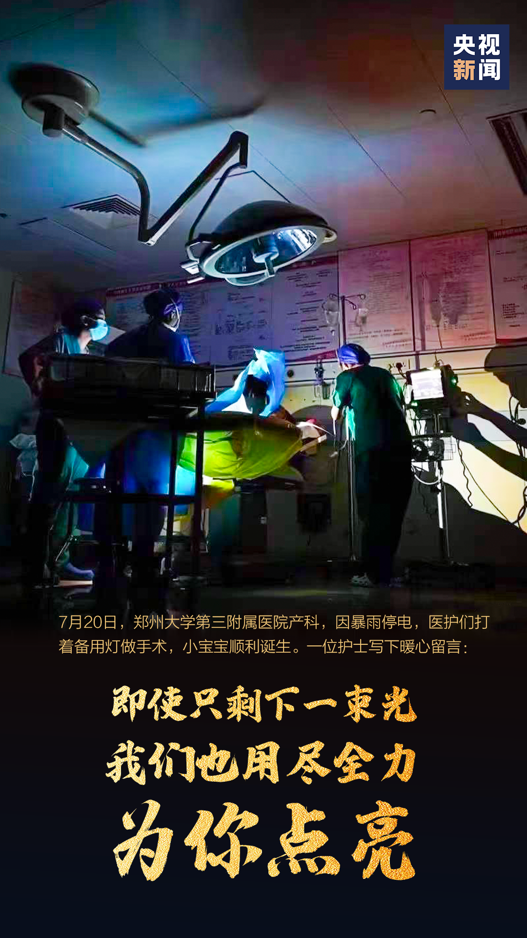 几名医护人员打着备用灯