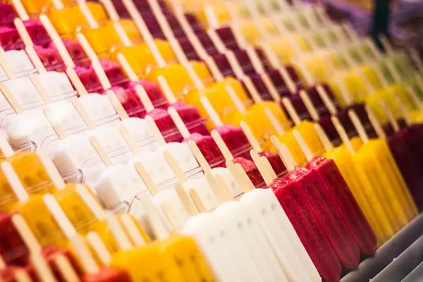 里面装着一个个裹着花纸衣的冰棍。