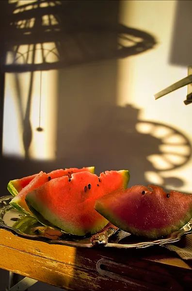 一家人围坐在一起吃西瓜。