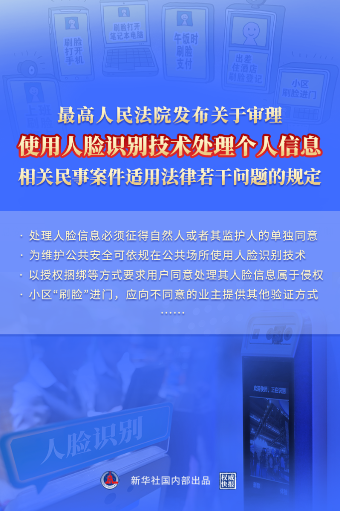 经营者使用“无感式”人脸识别技术悄悄采集消费者人脸信息、物业强制将人脸识别作为出入小区的唯一验证方式……近年来,人脸识别技术在社会生活中得到广泛运用,与之而来的纠纷也日益增多。28日公布的《最高人民法院关于审理使用人脸识别技术处理个人信息相关民事案件适用法律若干问题的规定》,进一步明确这些热点问题的适用法律,为维护个人信息安全增添保障。