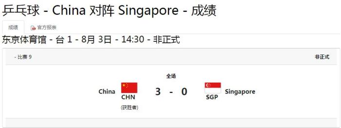 北京时间3日,在东京奥运会乒乓球女团1/4决赛中,中国队3:0轻松战胜新加坡队,晋级四强。