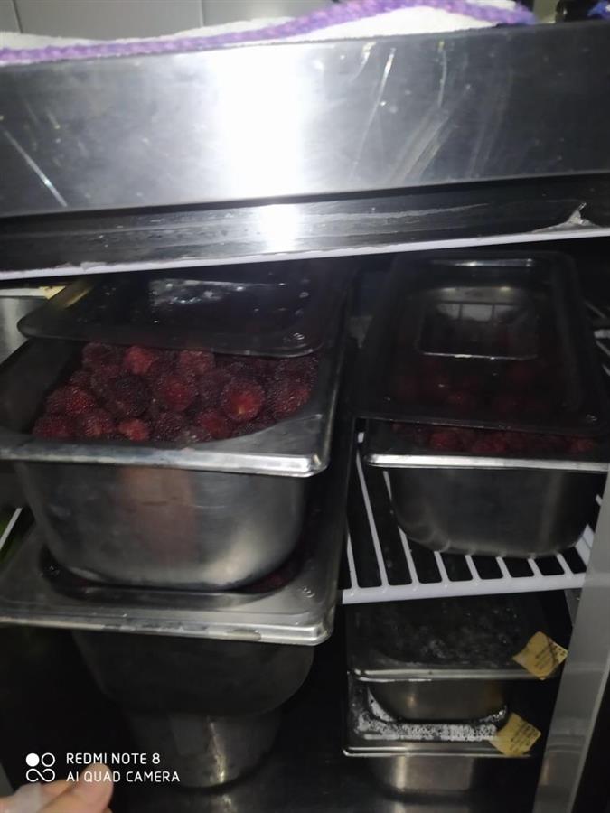 在“奈雪的茶”长安商场店,一些发黑的芒果摆放在后厨的桌子上,员工被提醒要去掉“黑色”部分继续使用,“不要浪费,稍处理一下即可”。